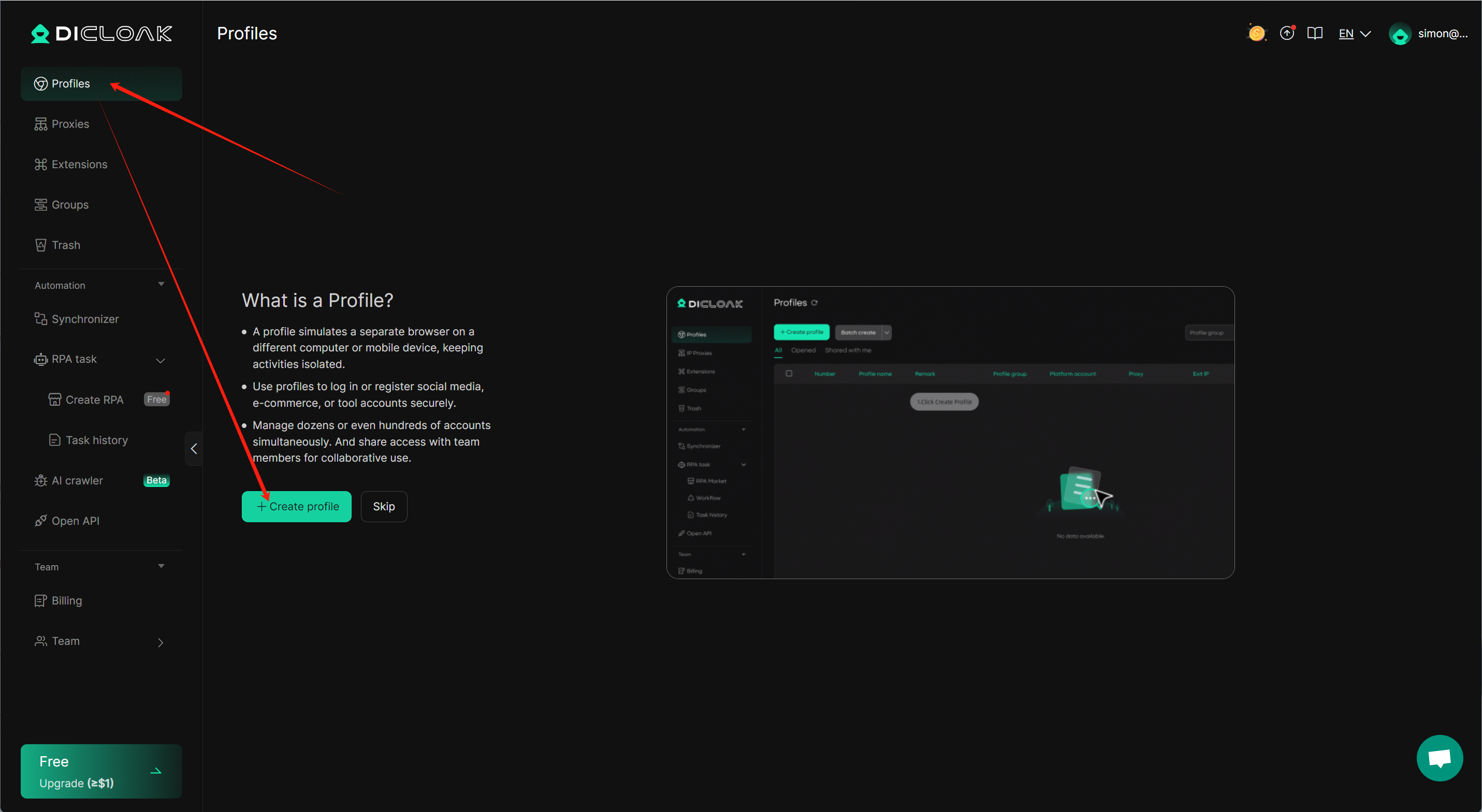 1.Download DICloak, register an account (if you haven’t already), and log in.